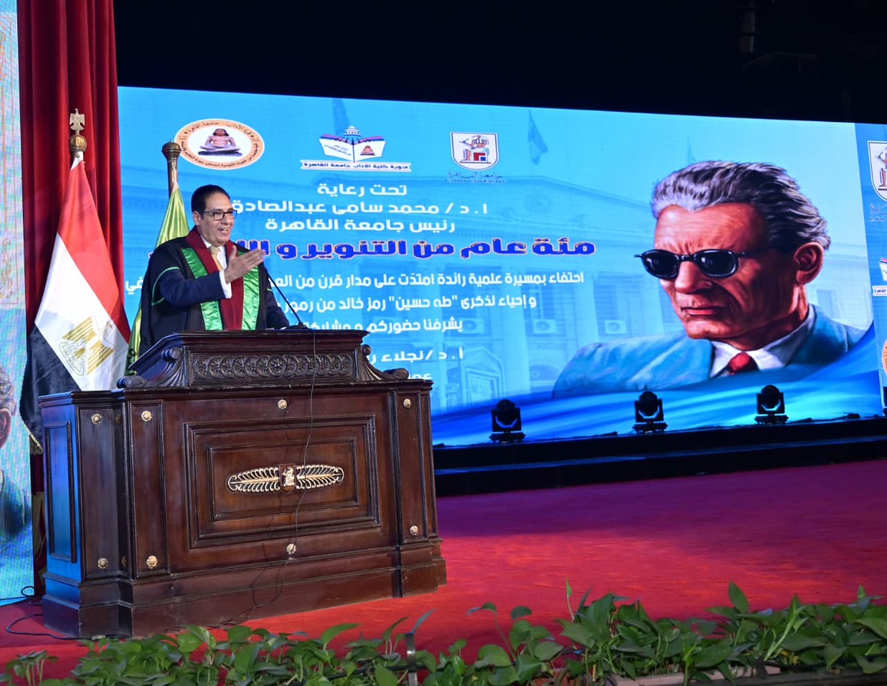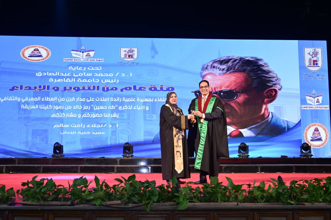 شهدت قاعة الاحتفالات الكبري بجامعة القاهرة، تحت رعاية وحضور الدكتور محمد سامي عبدالصادق، رئيس الجامعة، احتفالية كبري بمناسبة مرور مائة عام على تأسيس كلية الآداب، “100 عام من التنوير والإبداع”، التي تُعد منارة للفكر والأدب والعلوم الإنسانية، وأسهمت إسهامًا كبيرًا في تشكيل الوعي الثقافي والاجتماعي في مصر والعالم العربي، وخرجت أجيالًا من العلماء والأدباء والمفكرين الذين كان لهم أثر بالغ في مسيرة الثقافة العربية الحديثة.