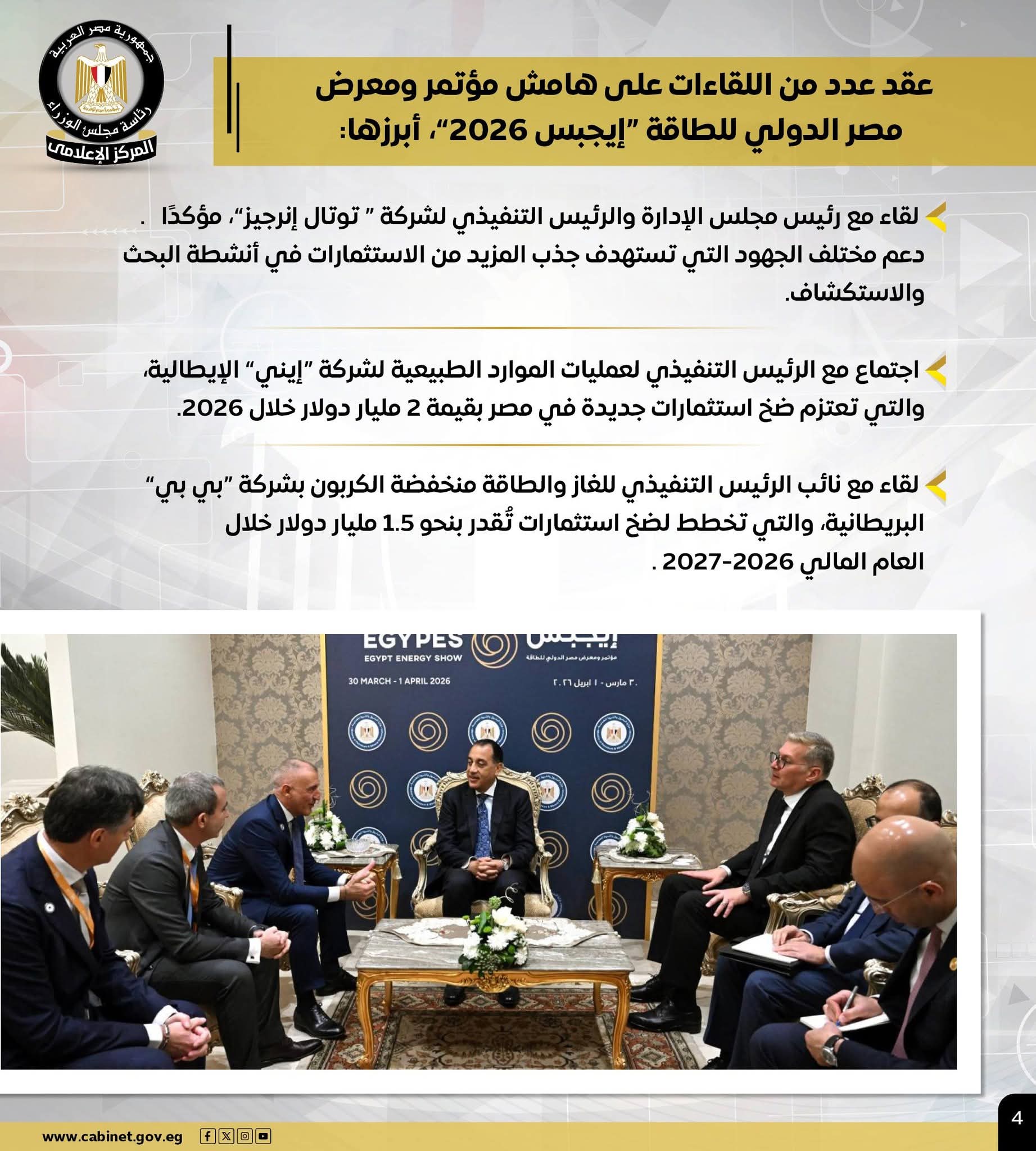 – خلال اجتماعه مع قيادات شركات الطاقة العالمية العاملة في مصر.. رئيس الوزراء: وزارة البترول نجحت في خفض مستحقات الشركاء الأجانب من 6.1 مليار دولار في 2024 لـ 1.3 مليار دولار حاليًا