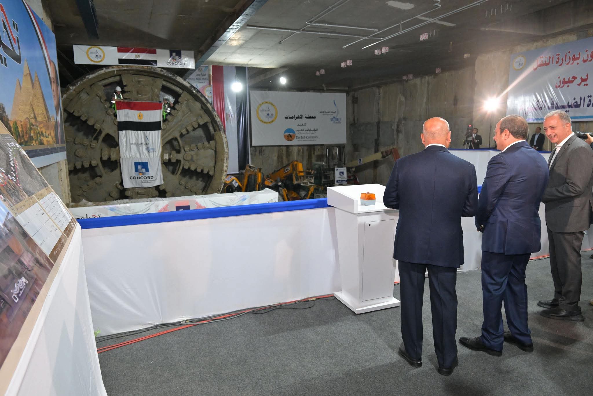 وصرح المُتحدث الرسمي باِسم رئاسة الجمهورية بأن السيد الرئيس استهل جولته بتفقد أعمال ماكينة حفر الأنفاق، ثم استمع سيادته إلى شرحٍ من الدكتور طارق الجويلي رئيس مجلس إدارة الهيئة القومية للأنفاق حول مشروع الخط الرابع لمترو الأنفاق ومشروع محطة الأهرامات التي تقع ضمن المرحلة الأولى للخط الرابع، والمقرر افتتاحها في النصف الأول من عام 2028، حيث أشار الدكتور طارق الجويلي إلى أن الخط الرابع يُعتبر هو أساس ربط مدينتي السادس من أكتوبر والقاهرة الجديدة بشبكة مترو أنفاق القاهرة الكبرى، كما أنه يُقدم خدمة لنقل الركاب للمناطق ذات الكثافة السكانية العالية في مناطق الهرم وفيصل والعمرانية والجيزة ومدينة نصر وجامعة الأزهر والقاهرة الجديدة، مُنوهاً إلى أنه من المُتوقع أن ينقل الخط حوالي 2 مليون راكب يومياً، كما ستتكامل خدمة النقل مع مونوريل السادس من أكتوبر.