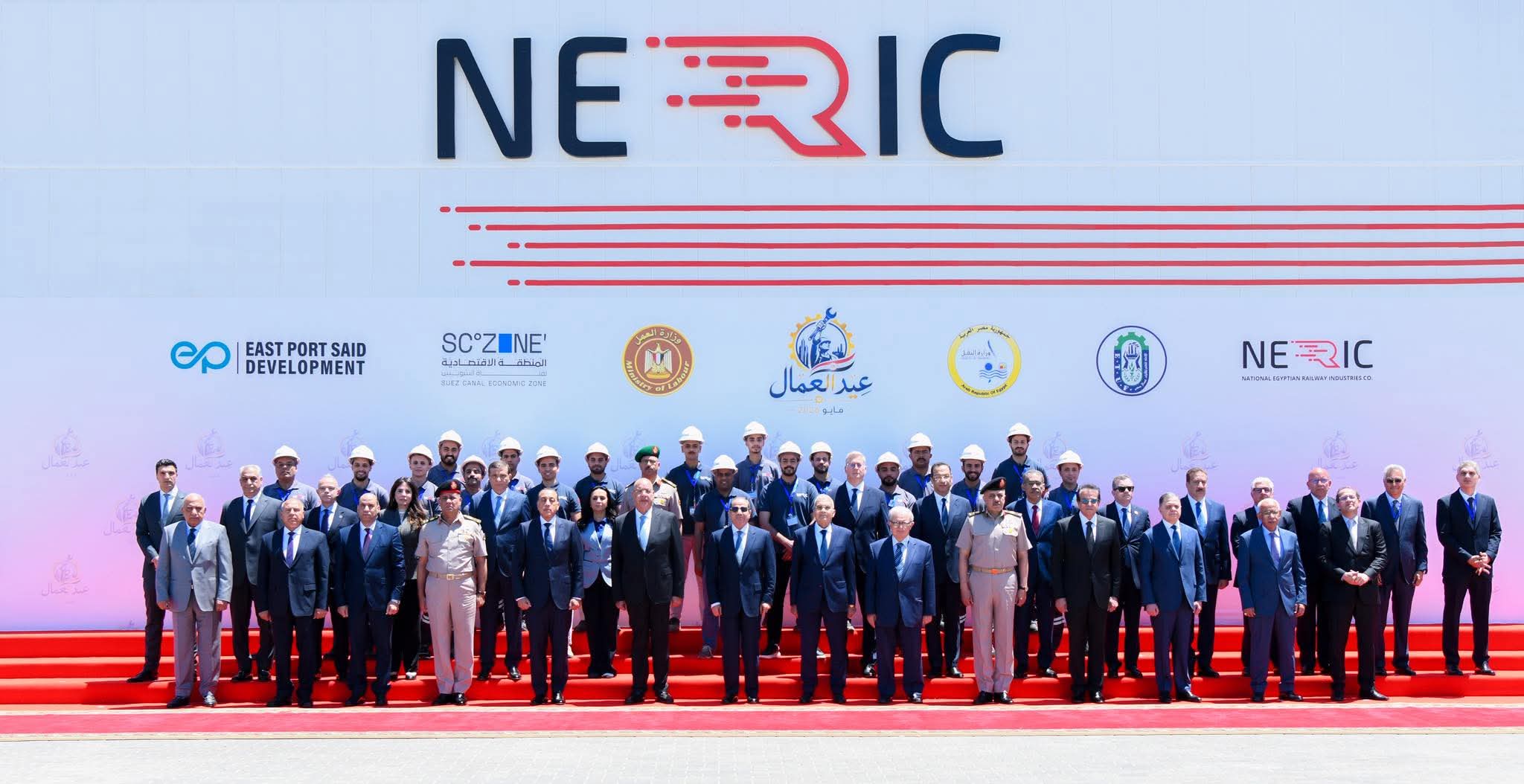 شارك السيد الرئيس عبد الفتاح السيسي، اليوم، في احتفال عيد العمال، والذي أُقِيمَ بمقرِ الشركة الوطنية المصرية لصناعات السكك الحديدية (نيرك)، بالمنطقة الاقتصادية لقناة السويس شرق بورسعيد، حيث كان في استقبال السيد الرئيس فور وصول سيادته إلى الخيمة الرئيسية للاحتفال السادة: المستشار هشام بدوي رئيس مجلس النواب، والمستشار عصام الدين فريد رئيس مجلس الشيوخ، والدكتور مصطفى مدبولي رئيس مجلس الوزراء، والدكتور حسين عيسى نائب رئيس مجلس الوزراء للشئون الاقتصادية، والفريق أشرف سالم زاهر القائد العام للقوات المسلحة وزير الدفاع والإنتاج الحربي، والفريق أحمد خليفة رئيس أركان حرب القوات المسلحة، والفريق كامل الوزير وزير النقل، وعددٍ آخر من السادة الوزراء، بالإضافة إلى السيد محافظ بورسعيد، والسيد رئيس الهيئة العامة للمنطقة الاقتصادية لقناة السويس ورئيس مجلس إدارة شركة نيرك، والسيد رئيس الاتحاد العام لنقابات عمال مصر.