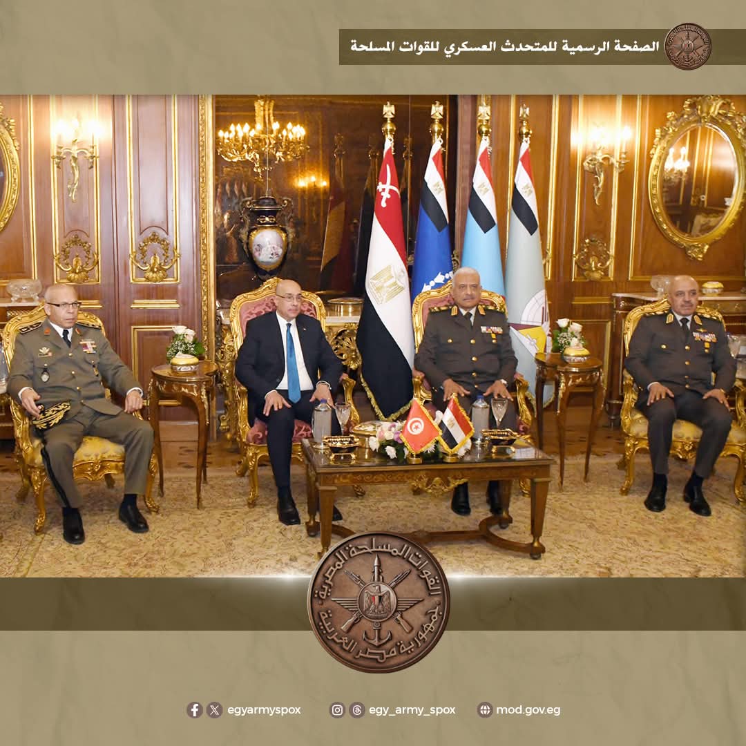 الفريق أول عبدالمجيد صقر القائد العام للقوات المسلحة وزير الدفاع والإنتاج الحربى يلتقى وزير الدفاع الوطنى للجمهورية التونسية