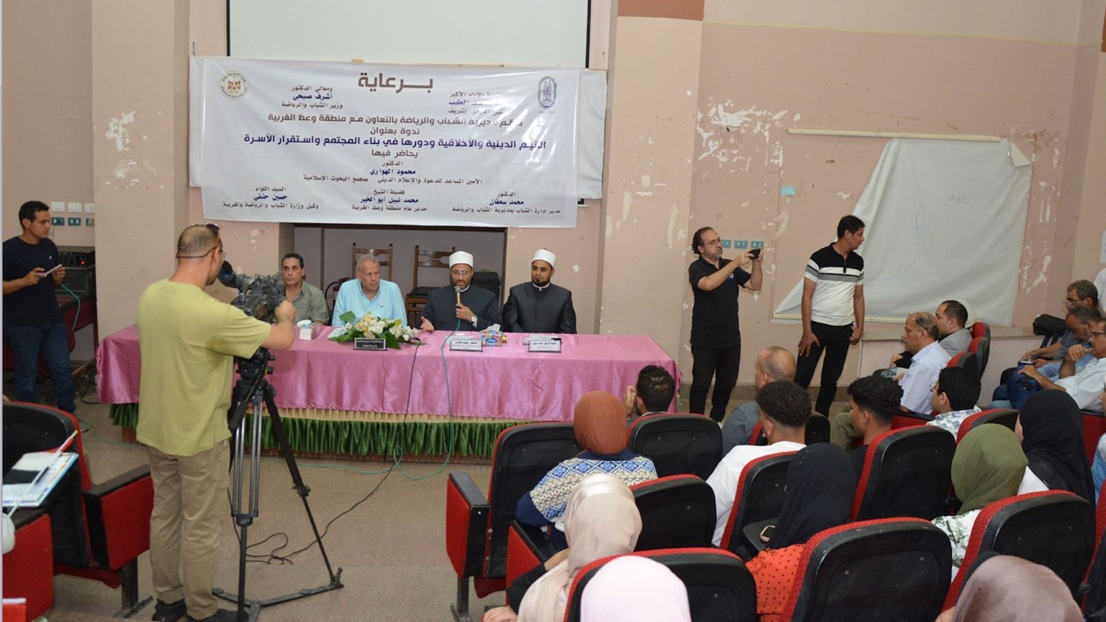 *خلال كلمته في ندوة حول القيم الدينية والأخلاقية بالغربية..* *الأمين المساعد لـ(البحوث الإسلامية): أزمتُنا في الوقوف عند المعرفة الأخلاقية دون ترجمتها إلى واقع* ألقى الدكتور محمود الهوَّاري، الأمين العام المساعد للدعوة والإعلام الديني بمجمع البحوث الإسلاميَّة، كلمةً في الندوة التي نظَّمتها، أمس الأحد، منطقة وعظ الغربية، بالتعاون مع مديرية الشباب والرياضة، بعنوان: (القيم الدينية والأخلاقية ودورها في بناء المجتمع واستقرار الأسرة»، بحضور عدد من قيادات الأزهر والمديرية، ولفيف من روَّاد مراكز الشباب بالمحافظة. وأكَّد الدكتور الهوَّاري أنَّ القيم الدينية والأخلاقية هي الضمان الحقيقي لبناء المجتمعات، وحماية الأفراد من…