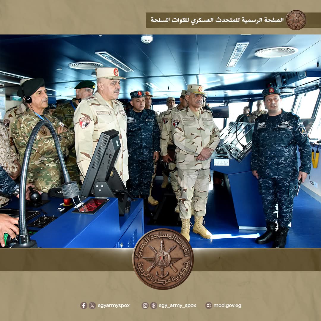 الفريق أول عبدالمجيد صقر القائد العام للقوات المسلحة وزير الدفاع والإنتاج الحربى يشهد تنفيذ المرحلة الرئيسية للتدريب المشترك ” ميدوزا – 14 “